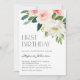 Invite guests to your event with this customisable first birthday party invitation. It features watercolor floral bouquet of pink and white flowers and greenery. Personalise this floral first birthday party invitation by adding your event details. This watercolor floral invitation is perfect for spring events.