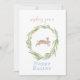 Pretty, watercolor Happy Easter card is perfect for remembering friends and family during the Easter season. The design is simple and cute with elegant, pastel colour, watercolor wreath filled with pastel eggs and a soft bunny hopping. The fonts are clean modern, making this a on trend, sweet holiday card. Keep the greeting provided and simply replace your name and information, or create your own personal greeting, too. Both are possible with the customisation tool.