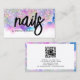 Feminine Pretty Watercolor Pink and Purple with Holographic Glitter Nails Artist Business Card