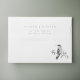 A hand-painted watercolor black and white hummingbird on an elegant wedding invitation envelope