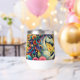 Beautiful colourful flowers and a pretty white horse. Whimsical ai art.