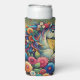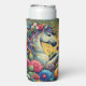 Pretty Whimsical Colourful Flowers and White Horse Seltzer Can Cooler