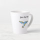 This Latte mug has a pretty whimsical flying bluebird with yellow accents and a scrolled tail. Customise your text with the template.