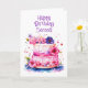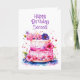 Pretty whimsical pink and purple birthday cake with flowers graphics. Personalise the card with a name and custom message inside. Birthday card fo her, wife, girlfriend, sister, mum, grandma, aunt or friend.