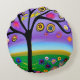 Pretty Whimsical Tree Folk Art Ai Generated Art Round Cushion