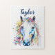 Pretty White Horse Floral Personalised Jigsaw Puzzle