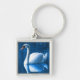 Pretty white swan floating on a blue lake key ring