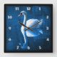 A lovely nature scene of a white swan swimming on a peaceful blue lake. The dark blue shadows contrasts nicely with the soft blue lighting on this peaceful swan.