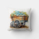 Pretty Wildflowers In A Wooden Wagon Cushion