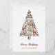 This beautful Christmas holiday card features a Christmas tree designed out of winter foliage, berries, and a cute little deer. Styilsh real foil text and accents add an elegant touch. Easy to personalize and there are more text templates on the back for further personalization. The background colors can be easily customized, if desired.
