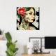 Pretty woman with pink flower in her hair art collage abstract ai art.