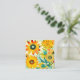 Yellow and Turquoise whimsical folk art style flowers Blank Card.