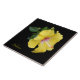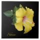 Pretty floral ceramic tile; a bright yellow hibiscus bloom on black tile