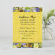 Celebrate your child's move to college with this pretty pastel yellow and purple floral "off to college" party invitation.
