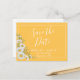 Pretty Save the Date postcard features watercolor white daisies corner on daffodil yellow background with white customisable text blocks in modern fonts