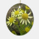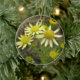 This pretty pendant style ornament features a detailed photograph of a pretty clump of yellow wildflowers. The photo was taken in the UK using macro photography for a detailed result.