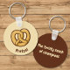 Baked pretzel illustration. Custom background colour. Custom text on both sides.