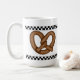 Enjoy your favourite hot beverage along with a visual snack by using this lip-smacking Pretzel Mug. Pretzel is an original illustration created by Debi Payne Designs. This toasted brown pretzel with its classic twisted shape recalls the yummy fragrance of a freshly baked hot pretzel accented with the large crystal grains of salt. The pretzel is surround by a classic black and white chequerboard border. Personalise any of the Pretzel products by adding your name or any text you choose. Collect all the fruits and vegetables in the Debi Payne Designs Kitchen Collection.