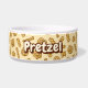 Pretzels and other baked savory snacks. Seamless pattern. Custom background colour. Custom text.