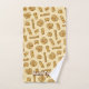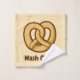 Pretzels and other baked savory snacks. Seamless pattern. Custom background colour. Custom text on each towel.
