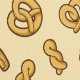 Pretzels and other baked savory snacks. Seamless pattern. Custom background colour.