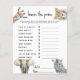 Price Guess Game - safari baby shower activity