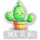 Illustration of a green, cute Kawaii cactus with smile and "Prickly but cute" text design