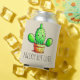 Illustration of a green, cute Kawaii cactus with smile and "Prickly but cute" text design