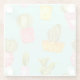 Prickly cacti in pots, watercolor pattern. glass coaster