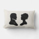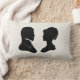 Pillow with man and woman silhouettes and on the back side is a quote from "Pride and Prejudice". The quote is from Mrs. Darcy, saying, "Completely and perfectly and incandescently happy".