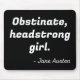 'Obstinate, headstrong girl.' Jane Austen quote from the book Pride and Prejudice.