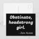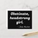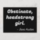 'Obstinate, headstrong girl.' Jane Austen quote from the book Pride and Prejudice.