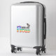 The stick looks amazing. Unfortunately, it would not stick on our suitcase as it was textured. When we found a non-textured (smooth) suitcase, the sticker stuck and looks great. The printing looked awesome.