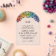 Floral LGBT wedding invitation with rainbow pride flowers ranging from red to purple with pretty baby's breath too in an arch above your wedding wording in charming fonts printed on acrylic. Invite your guests to your LGBT wedding with this floral acrylic wedding invite with rainbow-coloured flowers stretching out across the curved top of the monogrammed lesbian wedding invitation. Arch-shaped acrylic gay wedding invitation with pretty flowers and baby's breath in pride colours.