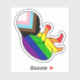 The stick looks amazing. Unfortunately, it would not stick on our suitcase as it was textured. When we found a non-textured (smooth) suitcase, the sticker stuck and looks great. The printing looked awesome.