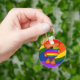 Cute key chain / keyring of a little teddy bear holding a giant rainbow pride heart