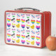 This is a standard metal lunchbox that appears to work just fine. We designed this box ourselves with an uploaded photo and custom text on the front and back. It looks absolutely beautiful except the front of the lunchbox is not centered like it shows in the photo. The print borders don't align with the inset flat part of the box where the preview photo online showed it perfectly centered in there. The back looks nice and centered though.