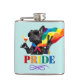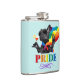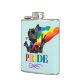 Celebrate Pride Month with this fun and whimsical design featuring a French bulldog holding a martini while giving the peace sign in his colourful rainbow cape blowing in the breeze. PRIDE is spelled out in matching rainbow colours with a purple squiggle embellishment underlining the text.