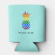 Gear up for pride month with these vibrant aqua can coolers featuring a tropical pineapple illustration in the rainbow pride flag colours. Customise with your choice of custom text beneath.