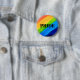 This colourful button is decorated with watercolor stripes in rainbow colours and the word "PRIDE" in black typography.