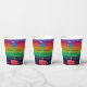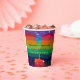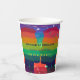 Rainbow pride flag with two men with names and a description. Adorable pride party paper cups. Customise text.