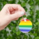Show your pride with this rainbow patterned keychain.