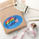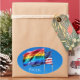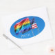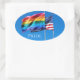 Bright stickers featuring a billowing rainbow Pride flag along with an American flag, set against a brilliant blue sky. Celebrating a welcoming, diverse America. Photographed at Cherry Grove on Fire Island. Part of the Pride Collection.