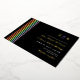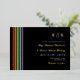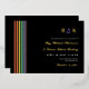 Informal LGBT wedding invitation with rainbow stripes, your monogram, and gold foil against a dark background with a modern informal wedding wording and your names in a golden modern script.