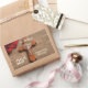 A wooden rosary crucifix is seen next to a beautiful red rose. Handsome gift, souvenir, giveaway or party essential to celebrate with a priest on his 25th Anniversary of Ordination. This is fully customisable with the name of the priest.