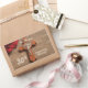 A wooden rosary crucifix is seen next to a beautiful red rose. Handsome gift, souvenir giveaway or party essential to celebrate with a priest on his 30th Anniversary of Ordination. This comes with a customisable name.