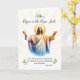 Celebrate the glory of Easter with this beautifully designed card for a Catholic Pries, featuring Jesus as the risen Lord. His arms are open wide with golden rays shining around Him. A message of joy and resurrection graces the front. Inside, a heartfelt blessing expresses appreciation for a devoted priest, honouring his service and faith. A meaningful way to share Easter joy and gratitude with a beloved spiritual leader.