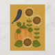 Prim Autumn Crow Pumpkin and Sunflowers Postcard