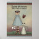 Primitive Country Doll with Cat, Heart, and Flower, says "Hearts are Warm Where Friends are Gathered."