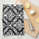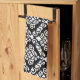 Prima Damask Big Ptn White on Black Tea Towel